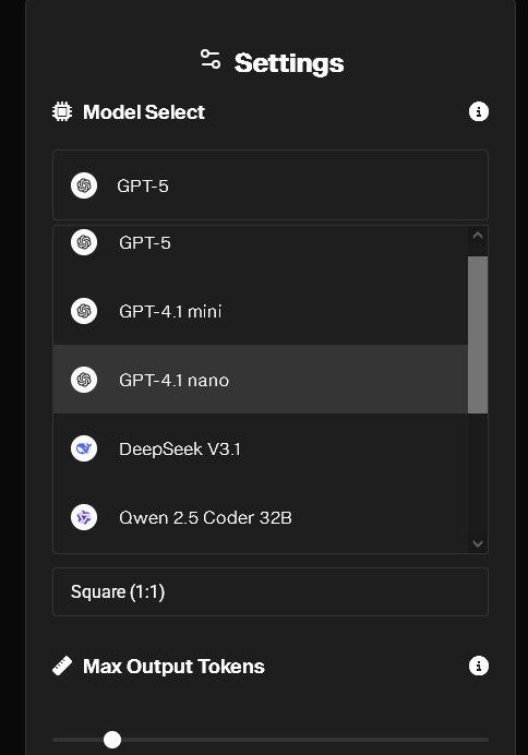 En effet, Mirexa AI rend accessibles gratuitement et sans barrière technique, les toutes dernières IA du marché. A l'heure où j'écris ces lignes, vous aurez donc accès aux grands modèles et langages d'IA actuels que sont : GPT-5, GPT-4.1 mini, GPT-4.1 nano, DeepSeek 3.1, Qwen 2.5 coder 32B, Gemini 2.5 Flash Lite, Mistral Small 3.1 et Flux-1 Kontext.